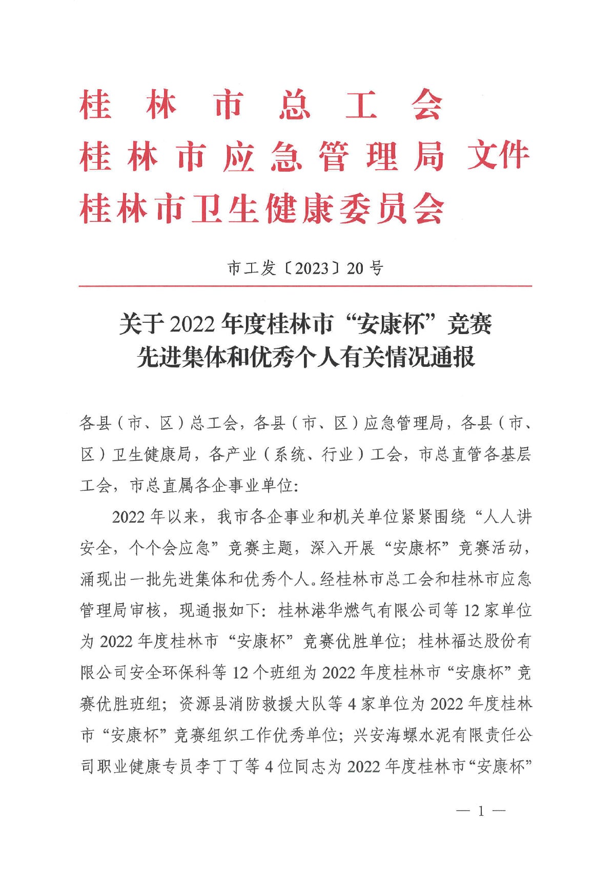 喜報(bào)!桂林礦機(jī)榮獲桂林市“安康杯”競(jìng)賽先進(jìn)集體