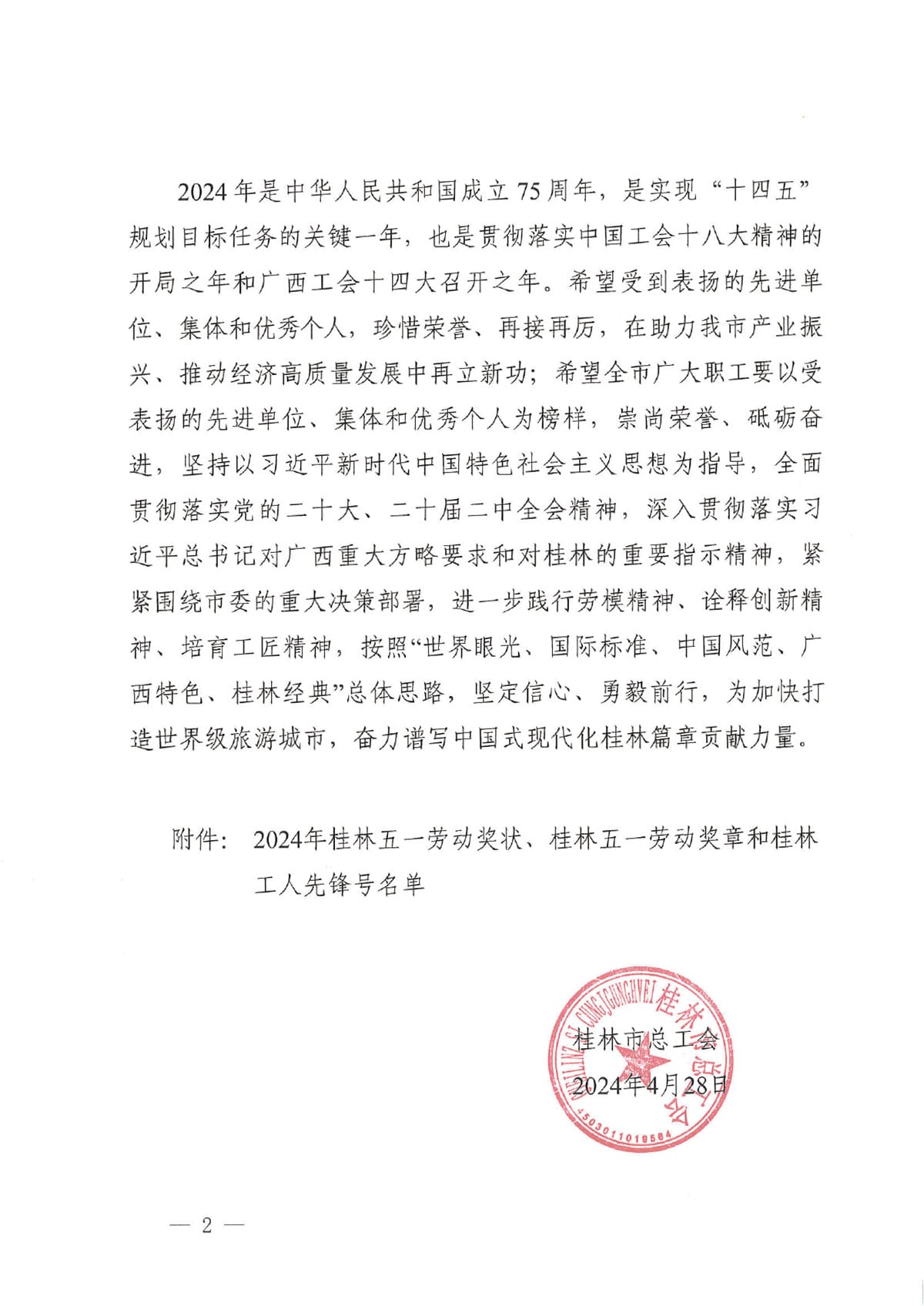 為表?yè)P(yáng)先進(jìn)、樹立榜樣。近日,桂林市總工會(huì)發(fā)文關(guān)于表?yè)P(yáng)2024年桂林五一勞動(dòng)獎(jiǎng)和桂林工人先鋒號(hào)的通報(bào),決定授予唐義廷等49名職工桂林五一勞動(dòng)獎(jiǎng)?wù)隆?